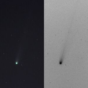 Colour image and an inverted image of the comet taken on the 24th October 2025 at 7.43pm.