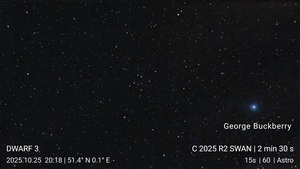 Two super images of Comet C/2025 R2 (SWAN) taken by members Jim Burchell and George Buckberry using their smart scopes.