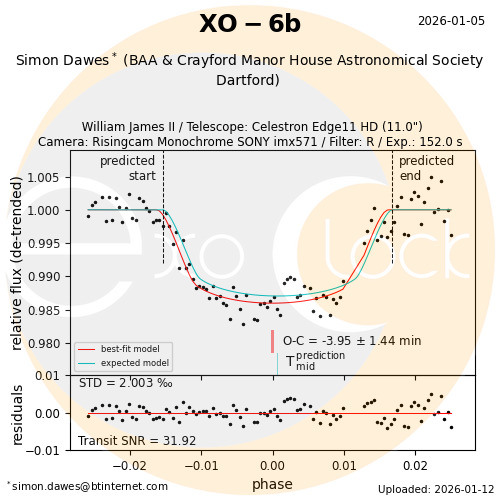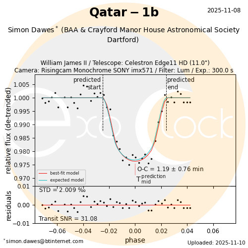 These are the latest Exoplanet transits that member Simon Dawes has done for the ExoClock project.