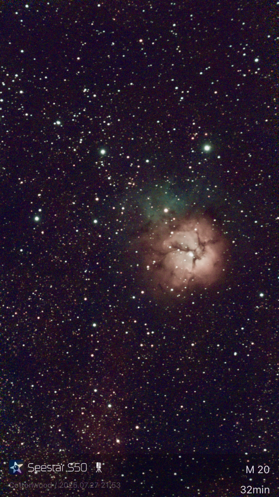 A fantastic image of the Trifid Nebula taken by Richard Bohner in July 2025 from Cottonwood in Arizona, USA.