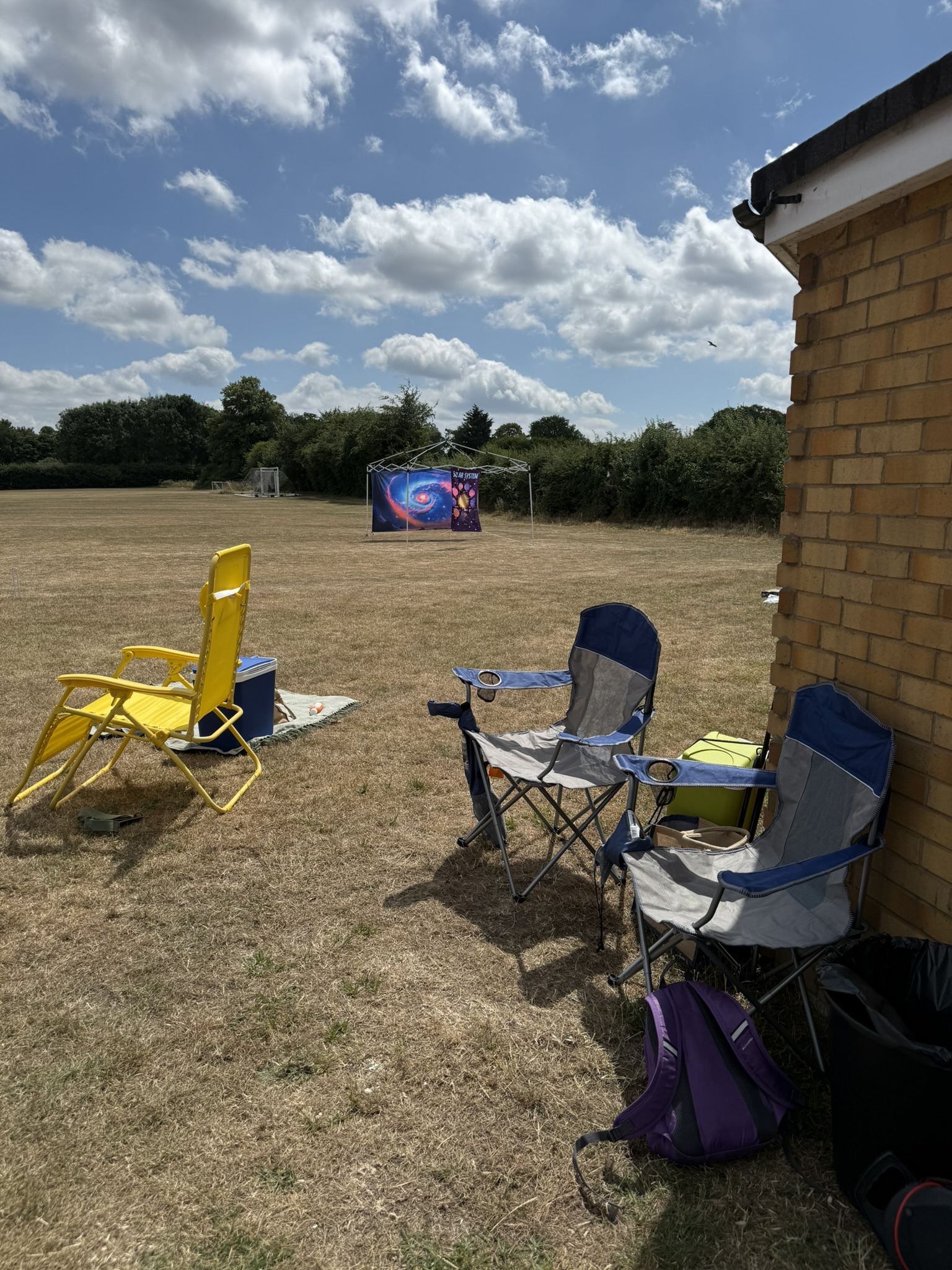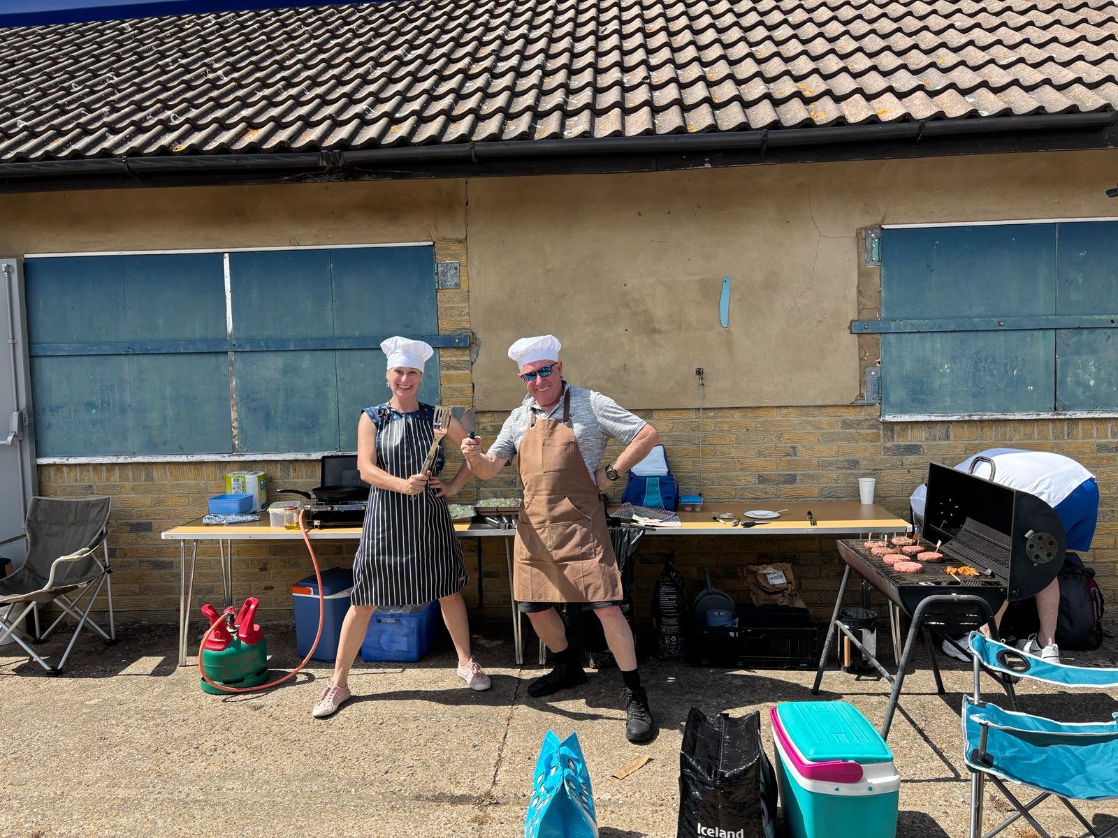 The team set up from 11:45, with assembly of two gazebos (one for food/drink and the other for games), and outdoor games. Steve, Jo and John set up their respective barbecues and very soon all was ready!