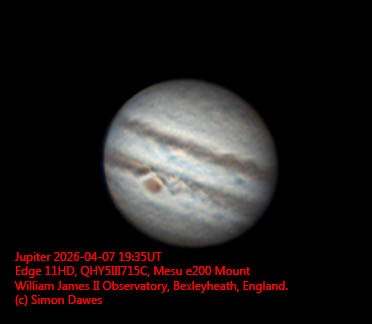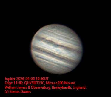 Two super images of Jupiter taken by Simon Dawes on the 6th & 7th April 2026.