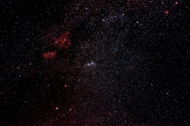 Image of the Double Cluster taken from Kelling Heath with a Canon 600D, Modified with the Full Spectrum Mod and a Clip-in CLSCCD filter