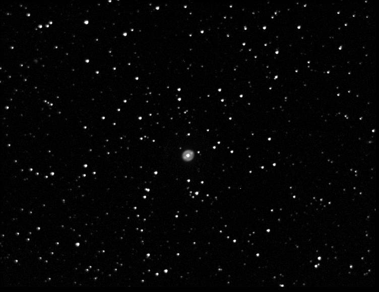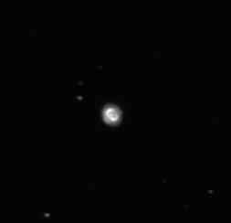When viewed through a small telescope, the brightness of the central star overwhelms the eye when viewed directly, obscuring the surrounding nebula. However, it can be viewed well in the peripheral vision (averted vision), which causes it to “blink” in and out of view as the observer’s eye wanders.