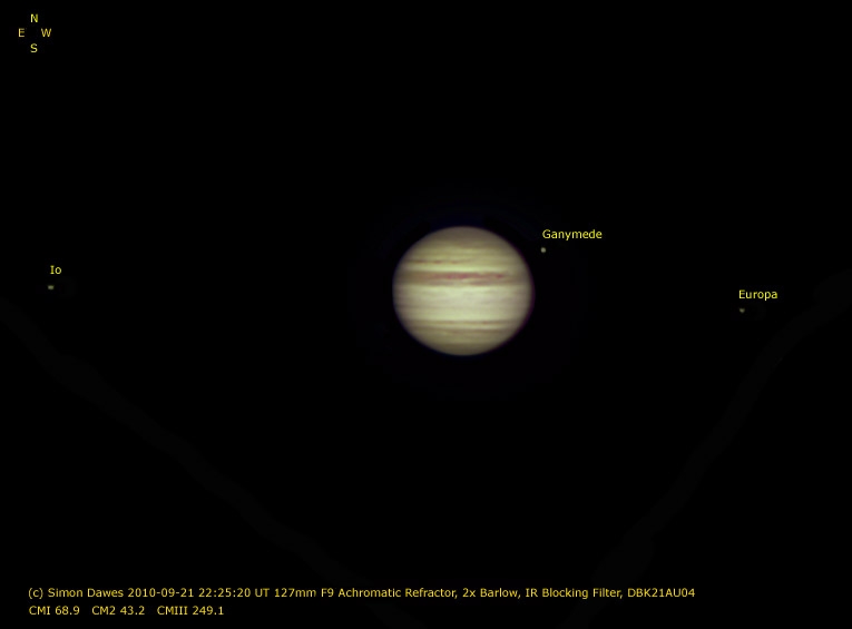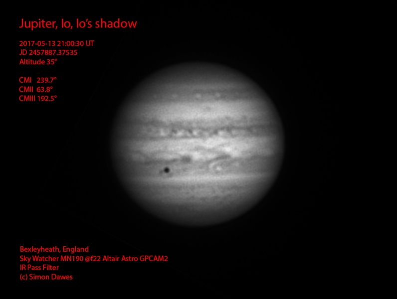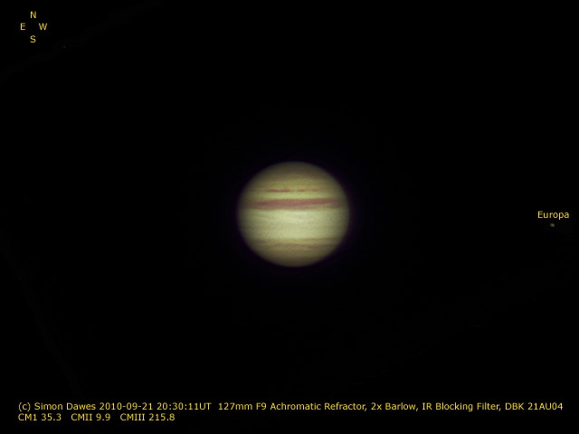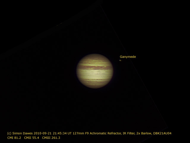 Two images of Jupiter taken by Simon Dawes. Seeing was poor on both nights but still great images were achieved.