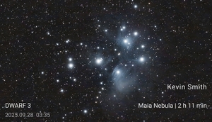 Two super deep sky images by member Kevin Smith taken using his Dwarf3 smart scope from Deal in Kent. The first image is of the North American Nebula and the second of the Maia Nebula.