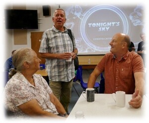 Nick James, the BAA Comet section director spoke to us about viewing comets such as “C/2020 f3 Neowise among others from various locations and Mr Ian Sharp spoke to us about getting started with Photometry. Nick & Ian can be seen in this photo chatting with CMHASD member Rita Whiting.