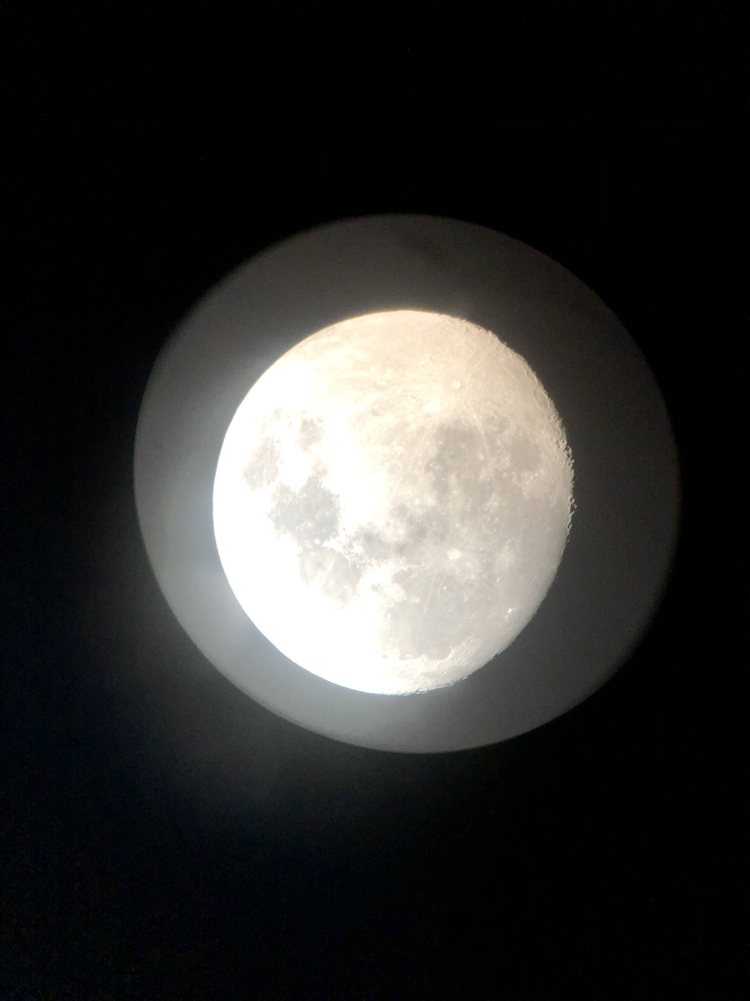 A stunning example of a Lunar Halo captured by 3 members of the society – Leigh Slomer, Honor Wheeler and Simon Dawes on the evening of the 25th Nov 2023. The white dot at the 4 o’clock position from the Moon is the planet Jupiter.